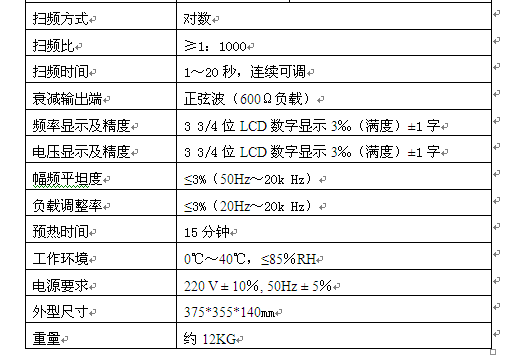 主要技術(shù)指標 掃頻范圍: 20 Hz~20 kHz精度1×10-4±1個字 輸出電壓 ( AC ) 0~18 Vrms,8 Ω負載 輸出電壓精度: ±10% 頻響: ±0.4dB (1 kHz為基準) 失真度: ≤0.5%(100 Hz~20 kHz) / ≤0.8%( 20 Hz~100 Hz ) 輸出功率 ( Pmax ): 60 VA 掃頻時間: 1~30 s 掃頻比 ≥1:10